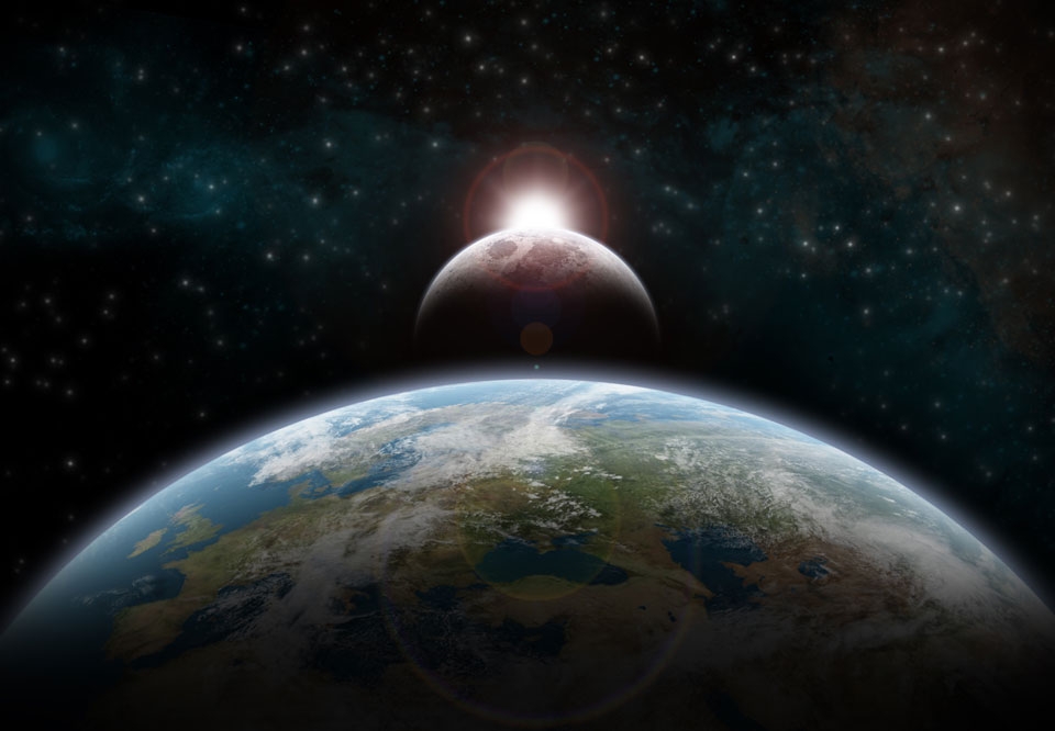 Een zonsverduistering vindt plaats doordat de maan tussen de zon en de aarde staat.